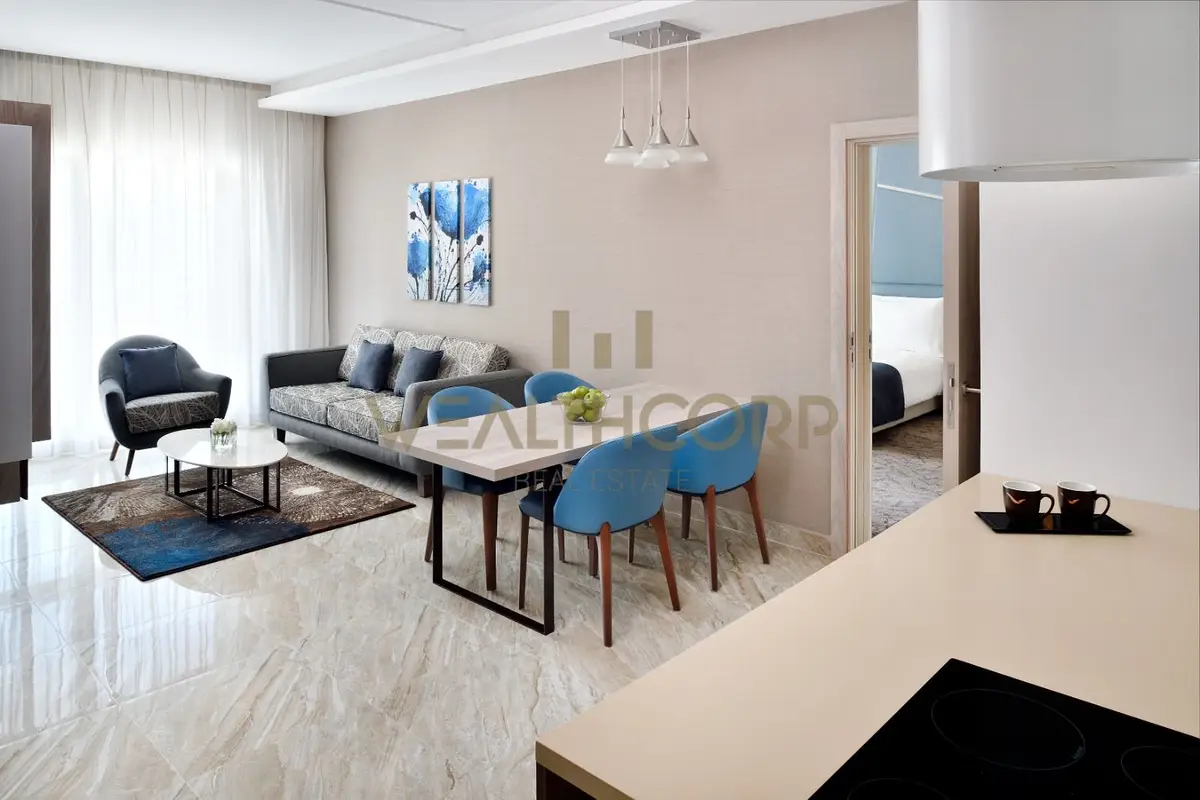 Wealthcorp Real Estate is proud to present this fully furnished 2-bedroom apartment at the Mövenpick Hotel Apartments Downtown Dubai, perfectly situated in the heart of Downtown. This residence offers modern comfort combined with the convenience of premium hotel services.